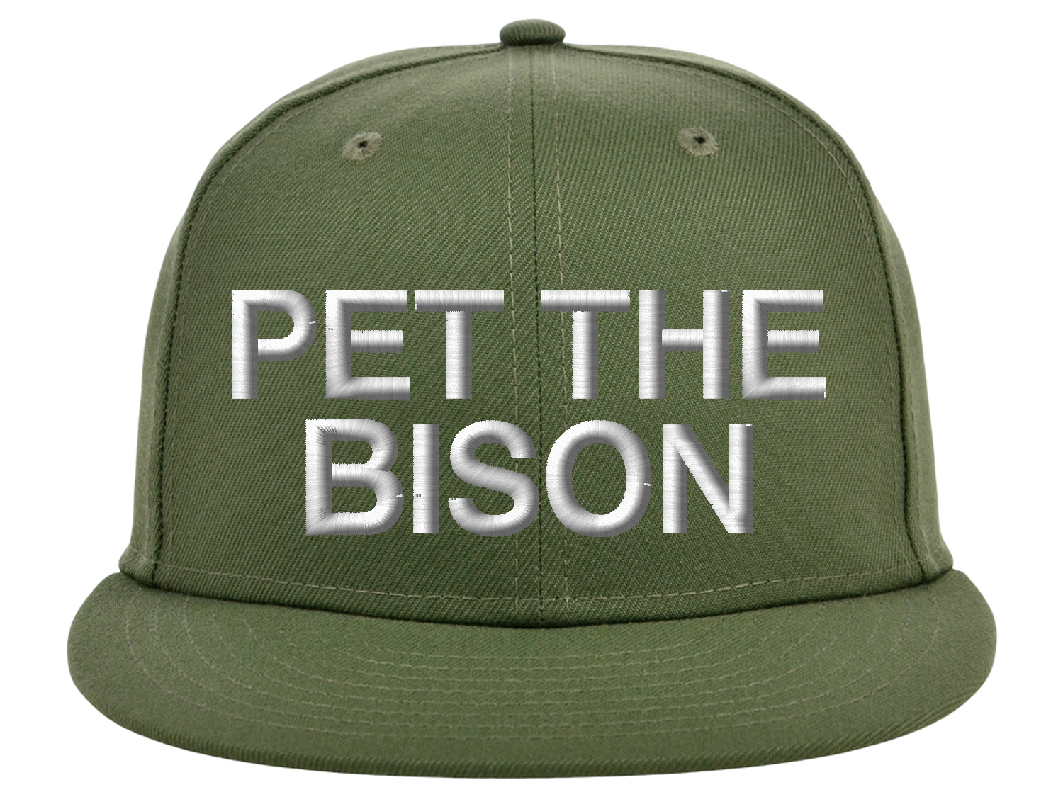 Snap Back Flat Bill - Pet The Bison - Olive Green